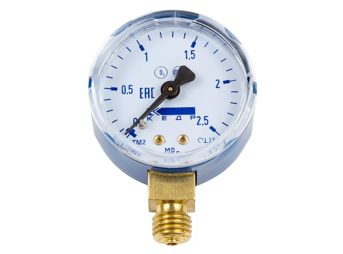 Манометр кислородный ТМ2 (0-2,5МПа, кл.2,5, М12Х1,5) О2-У предназначен для измерения давления в сварочных приборах.
