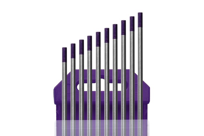 Электроды вольфрамовые WE-3, Ø 3,2 мм, цвет фиолетовый (цена указана за 1 электрод) в качестве легирования содержат оксиды нескольких редкоземельных металлов (лантана, иттрия, циркония), что обеспечивает особые преимущества в сравнении с торированными или лантанированными электродами: