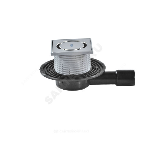 Трап для балконов и террас регулируемый Дн 40/50 с нержавеющей решёткой 115х115мм с высотой корпуса H=57мм горизонтальный выпуск HL HL90