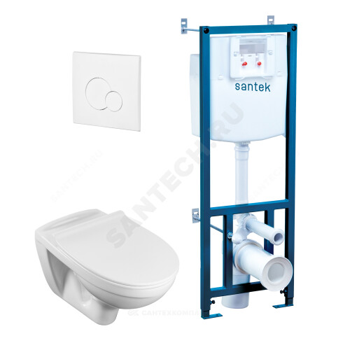 Комплект 4 в 1 Нео унитаз подвесной + инсталляция + кнопка смыва + сиденье микролифт Santek 1.WH50.1.543
