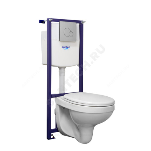 Комплект 4 в 1 Альфа унитаз подвесной + инсталляция + кнопка смыва + сиденье полипропилен Santeri 1.3815.9.S00.00B.0