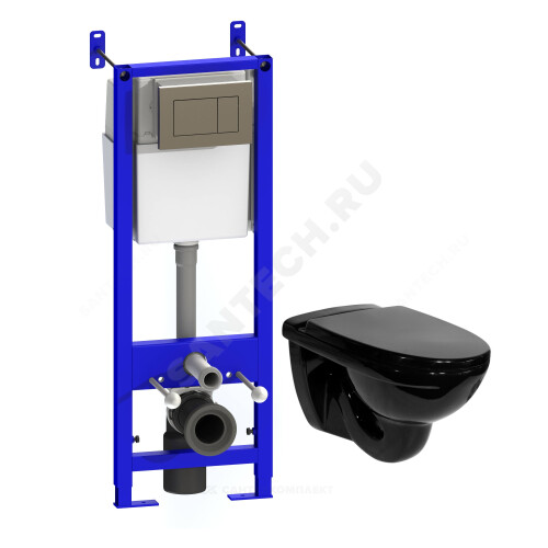 Комплект 5 в 1 Престиж унитаз подвесной + инсталляция + кнопка смыва + сиденье черный Оскольская керамика 45374100202