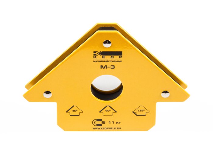 Магнитный угольник М-3 позволяет производить точное выставление углов в процессе проведения сварочных работ, монтажа стальных конструкций, используется как элемент удержания деталей. Данное приспособление дает возможность осуществлять процесс сварки одному рабочему. Может быть использован для крепления элементов в процессе резки для предотвращения падения частей конструкций.
