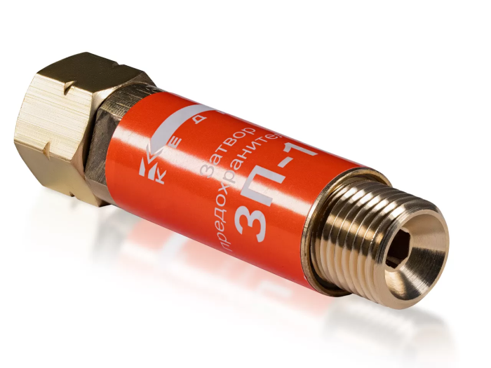 Затвор предохранительный КЕДР ЗП-1Г (пропан, ацетилен), на выход редуктора, М16х1,5LH левая резьба — предназначен для предотвращения прохождения обратного удара, возникающего при газопламенной обработке металлов, в защищаемое оборудование.