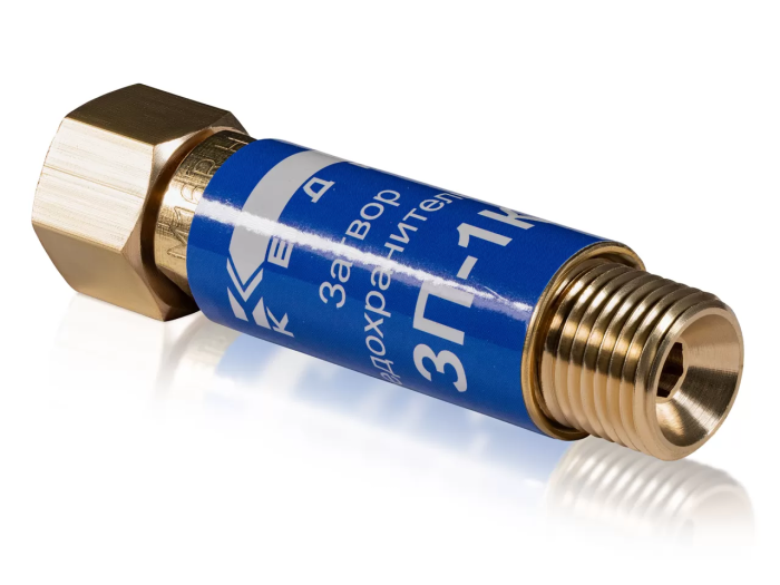 Затвор предохранительный КЕДР ЗП-1К (кислород), на выход редуктора, М16х1,5 — предназначен для предотвращения прохождения обратного удара, возникающего при газопламенной обработке металлов, в защищаемое оборудование.