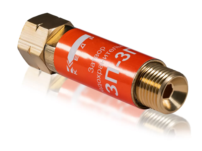 Затвор предохранительный КЕДР ЗП-3Г (пропан, ацетилен), на вход резака /горелки, М16х1,5LH левая резьба — предназначен для предотвращения прохождения обратного удара, возникающего при газопламенной обработке металлов, в защищаемое оборудование.