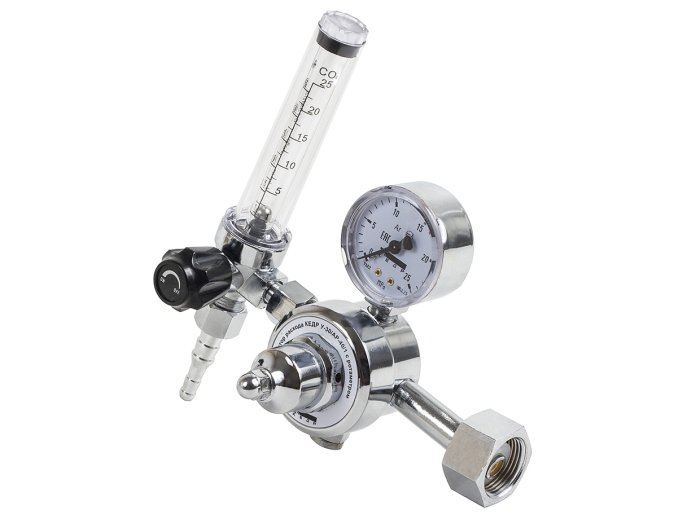 Регулятор расхода КЕДР У-30/АР-40/1 с ротаметром(8011695) предназначен для понижения давления защитного газа, подаваемого из магистрали или баллона, и поддержания постоянного заданного расхода при питании постов сварочного оборудования для MIG/MAG и TIG-сварки.