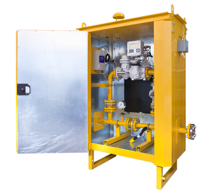 - измерительный комплекс СГ-ЭК либо СГ-ТК на базе ротационного счётчика газа RVG, турбинного счетчика газа TRZ либо диафрагменного счетчика ВК (ООО «ЭЛЬСТЕР Газэлектроника») для измерения объёма прошедшего через пункт газа в единицах объёма, приведённых к стандартным условиям;