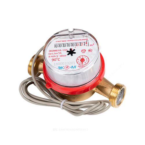 Счётчик г/в и х/в крыльчатый одноструйный Ду 15 Ру16 90С L=110мм резьба импульсный В/К ЭКОМЕРА