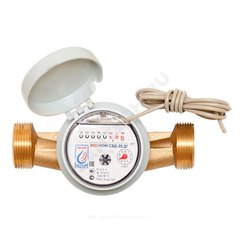 Счётчик г/в и х/в крыльчатый одноструйный Ду 25 Ру16 90С L=160мм резьба импульсный В/К ЭКО НОМ СВДГ25-001