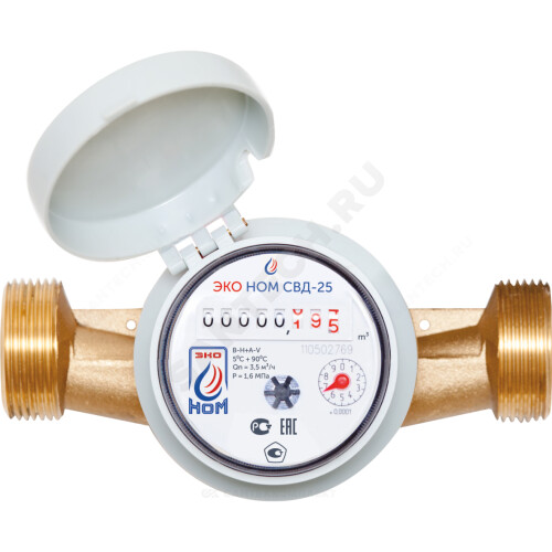 Счётчик г/в и х/в крыльчатый одноструйный Ду 25 Ру16 90С L=160мм резьба В/К ЭКО НОМ СВД25-007