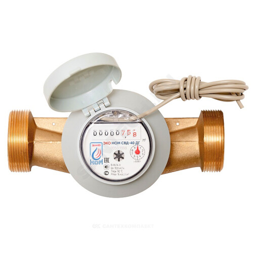 Счётчик г/в и х/в крыльчатый одноструйный Ду 40 Ру16 90С L=200мм резьба импульсный В/К ЭКО НОМ СВДГ40-003