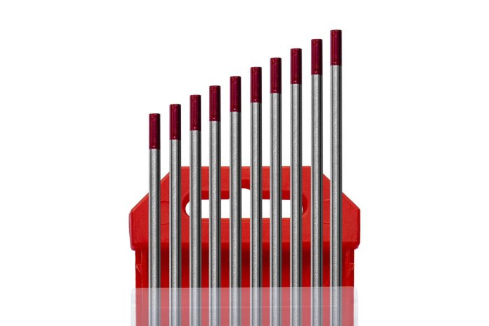 Электроды вольфрамовые WТ-20, Ø 3,2 мм, цвет красный (цена указана за 1 электрод) (торированные) предназначены для сварки углеродистых, низколегированных и нержавеющих сталей, меди, титана и их сплавов больших толщин.