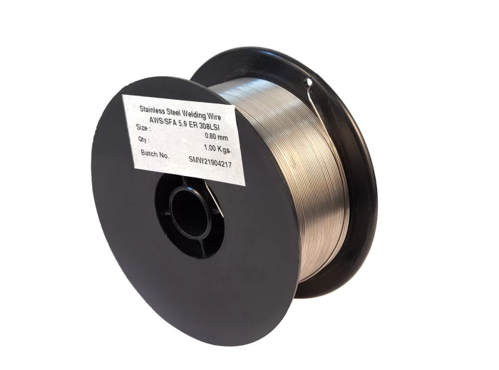 Проволока нержавеющая MIG ER-308LSi (Св-04Х19Н9Т), d. 0,8 мм (1кг) коррозионностойкая хромоникелевая сварочная проволока для полуавтоматической сварки аустенитных нержавеющих сталей c содержанием хрома ~18% и никеля ~ 8% типа 03Х17Н14М2, 03Х18Н11, 06Х18Н11, 08Х18Н10Т, 12Х18Н10Т, 304 и т.п. в среде защитных газов (Ar).