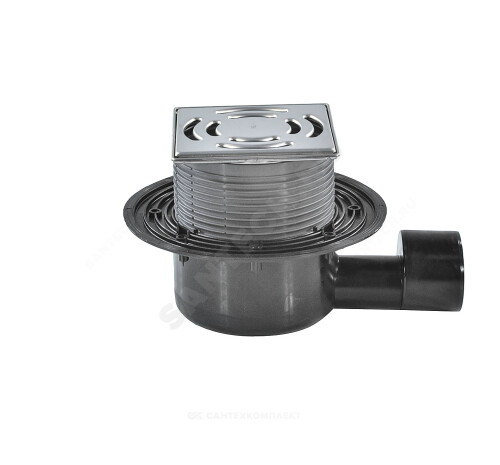 Трап регулируемый с сухим затвором Primus Дн 50/75 с нержавеющей решёткой 138х138мм с фиксацией решетки Klick-Klack горизонтальный выпуск HL HL5100Pr