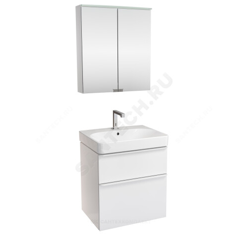 Умывальник с тумбой Smyle Square 60 белый глянец со шкафом зеркальным Option BASIC с подсветкой Geberit 529.352.00.6