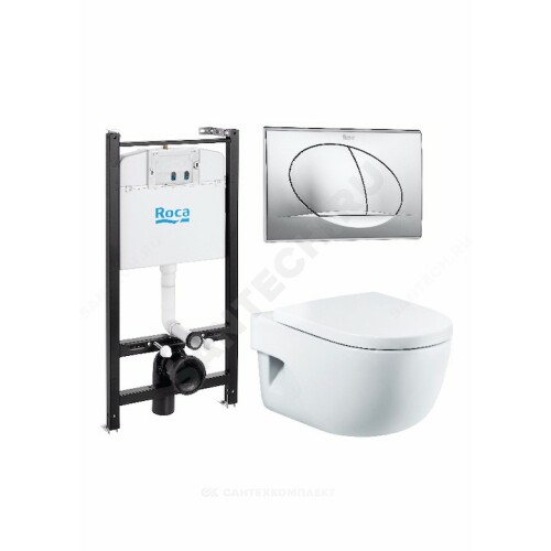Комплект 4 в 1 Meridian унитаз подвесной + инсталляция + кнопка смыва + сиденье Roca 893104110