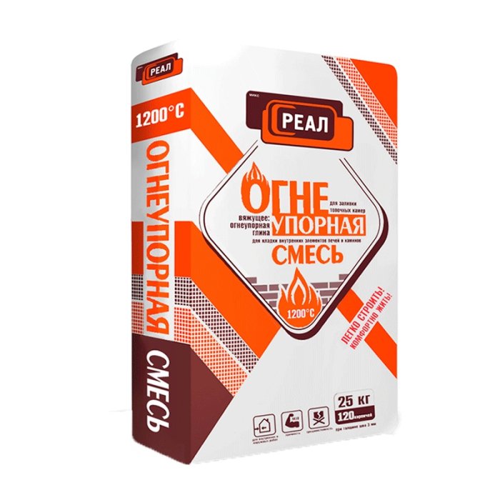 предназначена для кладки внутренних элементов печей, каминов, дымоходов, заливки топочных камер. Обладает высокой термической стойкостью в процессе эксплуатации до +1200°С. Эта огнеупорная смесь экономична, поскольку позволяет обходится тонким кладочным швом до 5 мм. Применяется для огнеупорного кирпича. Упаковка 25 кг позволяет уложить 125 огнеупорных кирпичей.