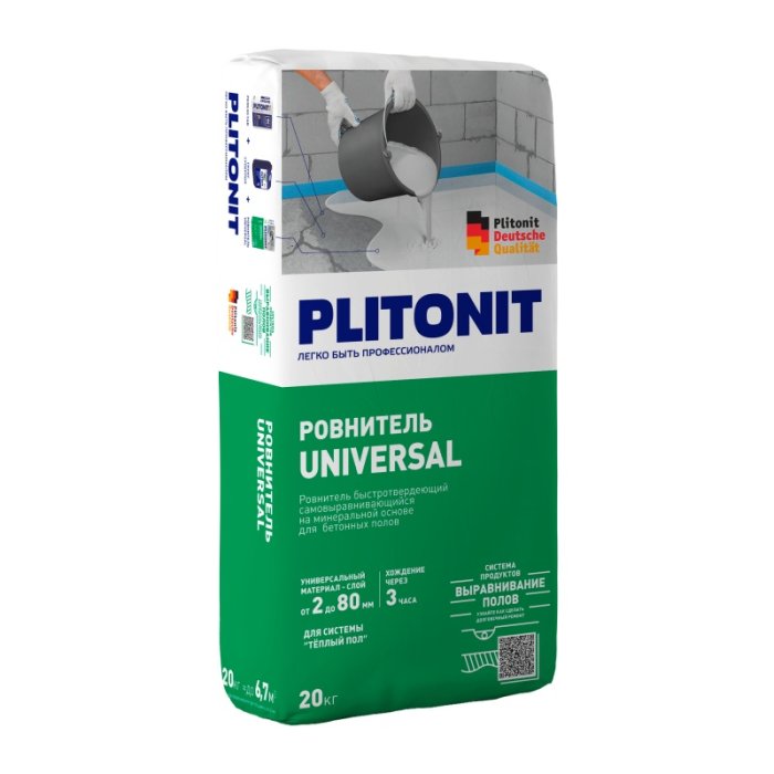предназначен для выравнивания и корректирования бетонных полов и монолитных цементных и полимер-гипсовых стяжек, внутри сухих и влажных жилых (конторских) помещений, под укладку напольной керамической плитки, выстилающих покрытий, паркета и использования в системе "теплый пол". Возможна эксплуатация во влажных помещениях. Не подлежит окраске и использованию без напольного покрытия.
