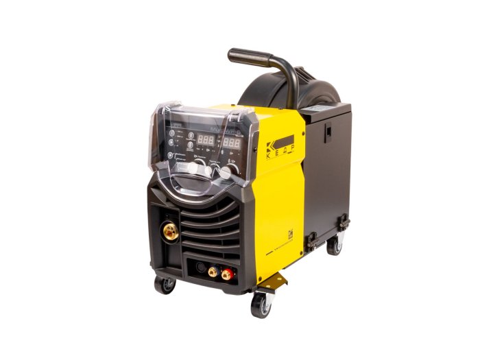 Прорезиненная рукоятка для переноски Защитная крышка панели управления Морозостойкий пластик передней панели Прорезиненные транспортировочные колеса Защитная крышка подключения разъемов соединительного кабеля 4-роликовый усиленный механизм протяжки сварочной проволоки промышленного классаКомплектация: