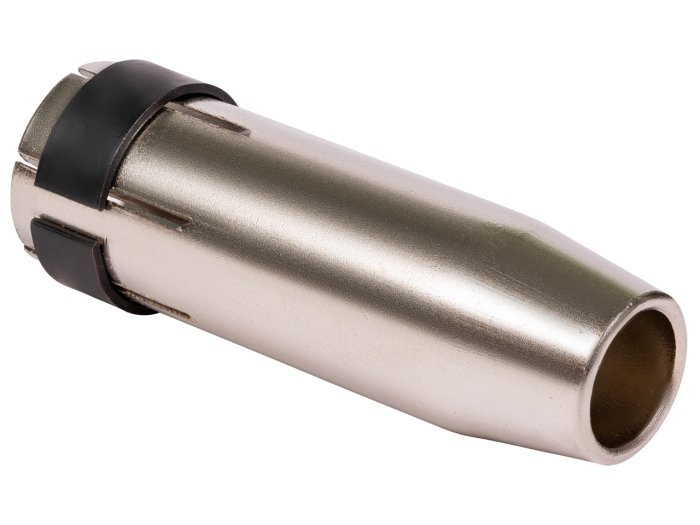 Сопло газовое (Mig-24) Ø 12,5 мм, коническое - предназначено для фокусировки газового потока в зоне сварки, бывает различной формы, размеров и может быть выполнено как из металла, так и из керамики. Важным моментом при выборе сопла считается его внутренний выходной диаметр, он выбирается в соответствии с шириной зоны свариваемых кромок. Также сопла могут отличаться геометрией выходной части - цилиндрическое и коническое, выбор зависит от необходимой интенсивности защиты кромок изделия.