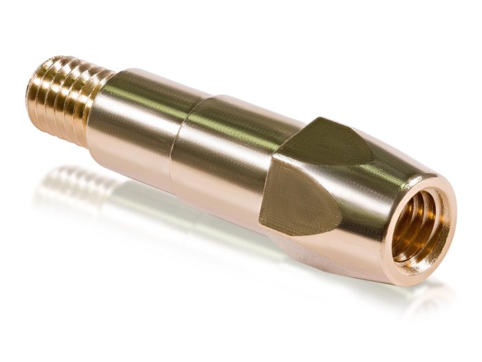 Вставка под наконечник M8/47 мм (Mig-40) - предназначена для монтажа контактного наконечника в горелку. Вставка отвечает за равномерное распределение защитного газа внутри сопла и токоподвод к наконечнику. Все вставки, как правило, выполнены из латуни, имеют симметрично расположенные отверстия по всей окружности. Вставки под наконечник отличаются в зависимости от модели горелки, имеют разные размеры и внешний вид.