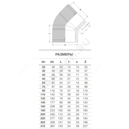 Отвод электросварной ПЭ100 SDR11 Дн 40х45гр Ру16 EUROSTANDARD 2116160040